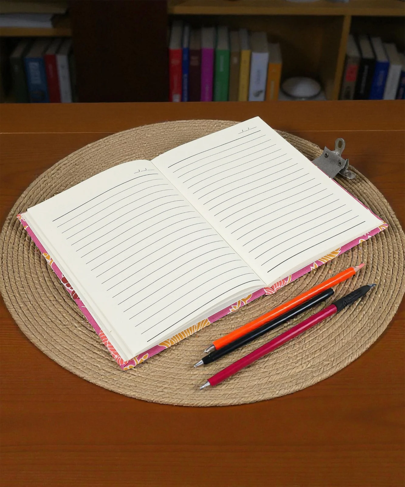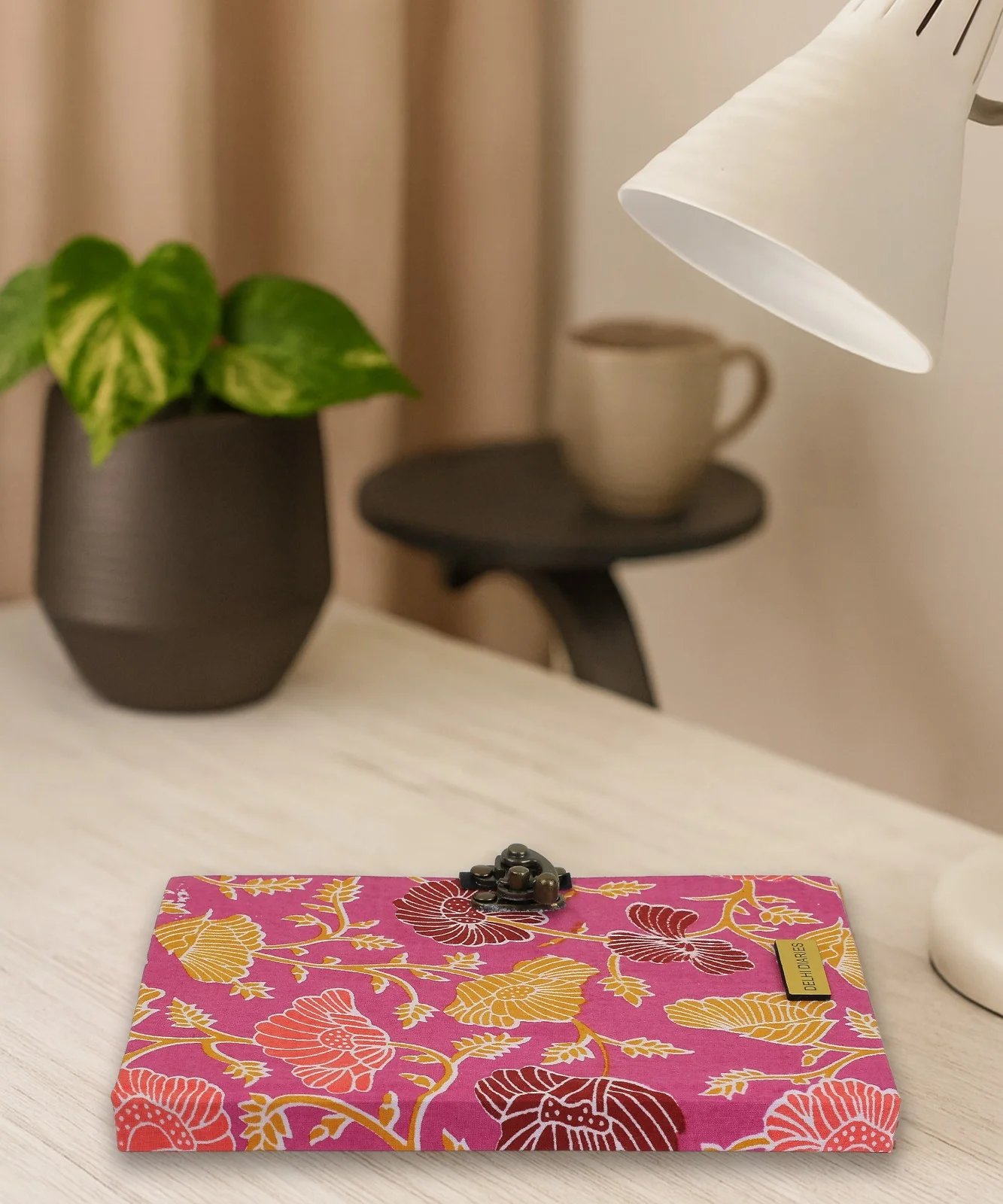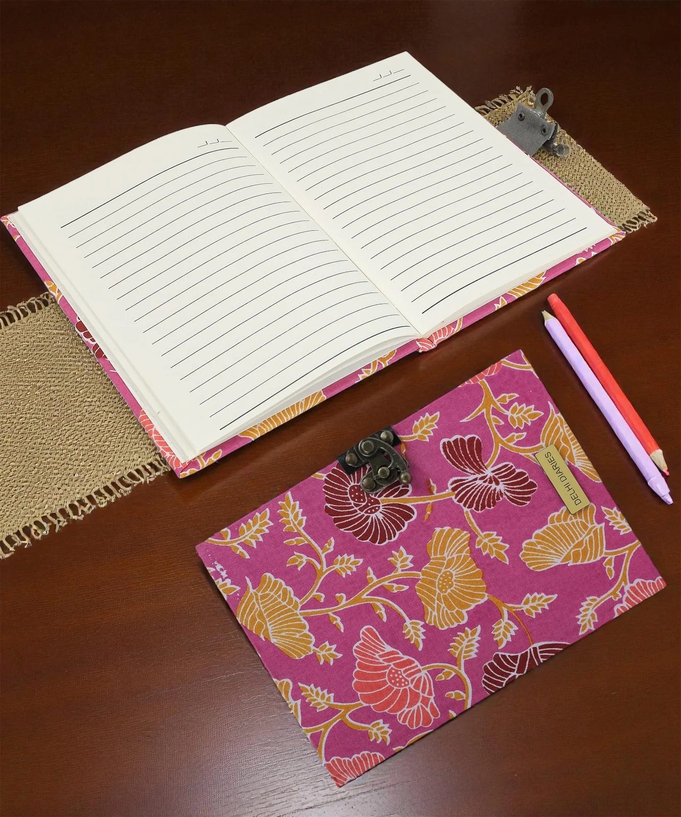 A vibrant multicolor cotton-cloth diary featuring floral prints and a vintage-style antique latch lock.