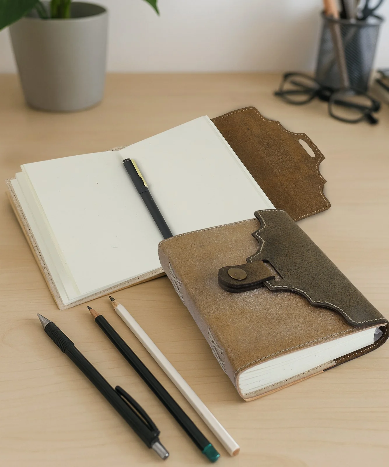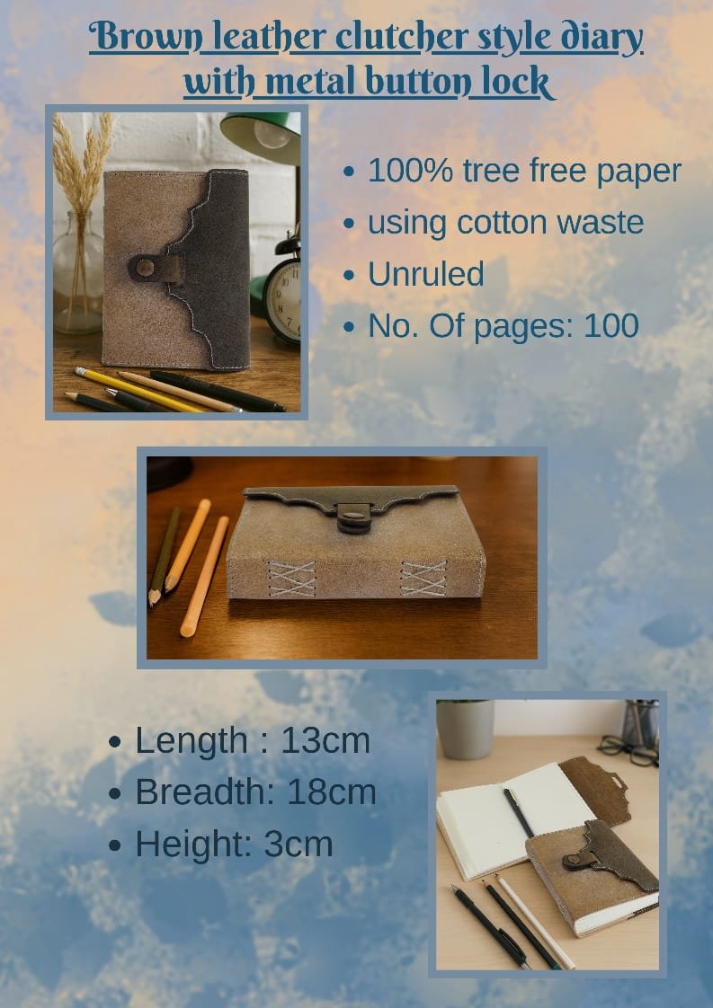 - 🪶 Handcrafted leather diary featuring an elegant clutcher-style flap and sturdy metal button lock